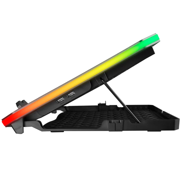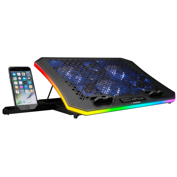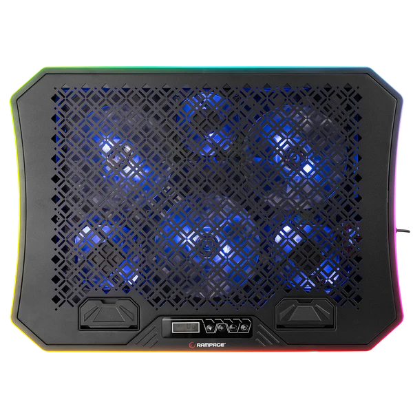 Rampage AD-RC34 Metafor është ftohës profesional për laptop, i pajisur me 6 ventilatorë të fuqishëm dhe ndriçim RGB, i projektuar për të reduktuar temperaturën dhe për të përmirësuar performancën gjatë punës intensive apo gaming. Mbështet laptopë nga 10 deri në 19 inç dhe ofron kënd të rregullueshëm për përdorim ergonomik dhe komod.